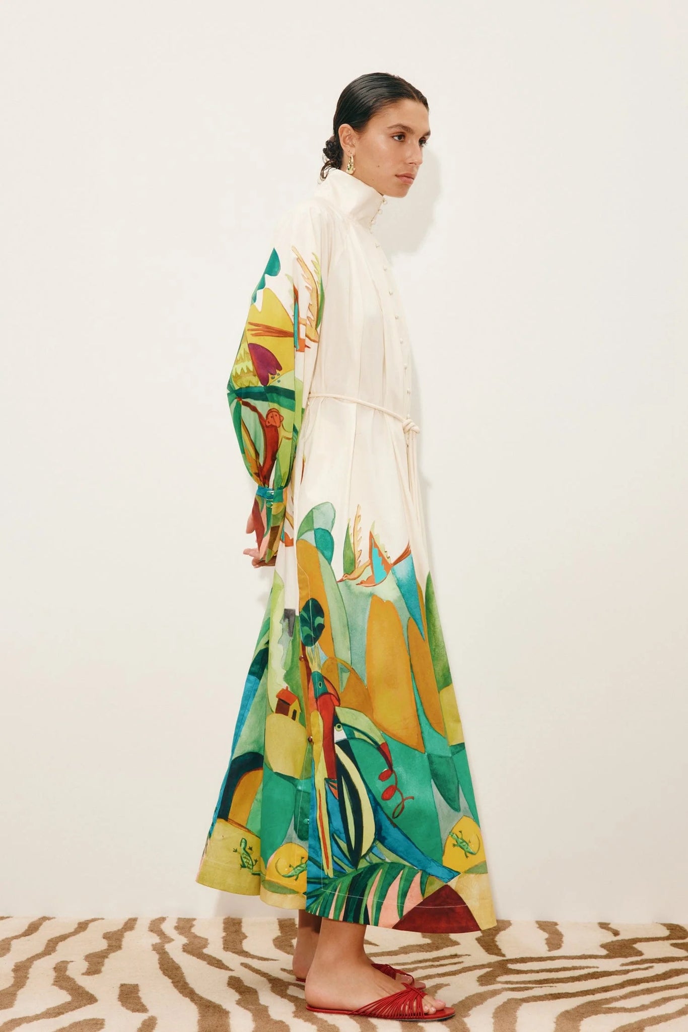 Crafted from crisp organic cotton, this relaxed midi shirtdress blends timeless tailoring with effortless ease. A fold-over collar stand and self-covered buttons lend a polished finish, while softly tucked sleeves with split cuffs add volume and quiet drama. The rouleau waist tie allows for a personalised fit, balanced by practical inseam pockets for everyday wear ability. Light, breathable, and thoughtfully detailed, this is a versatile piece designed to move seamlessly from daytime elegance to relaxed evening moments.